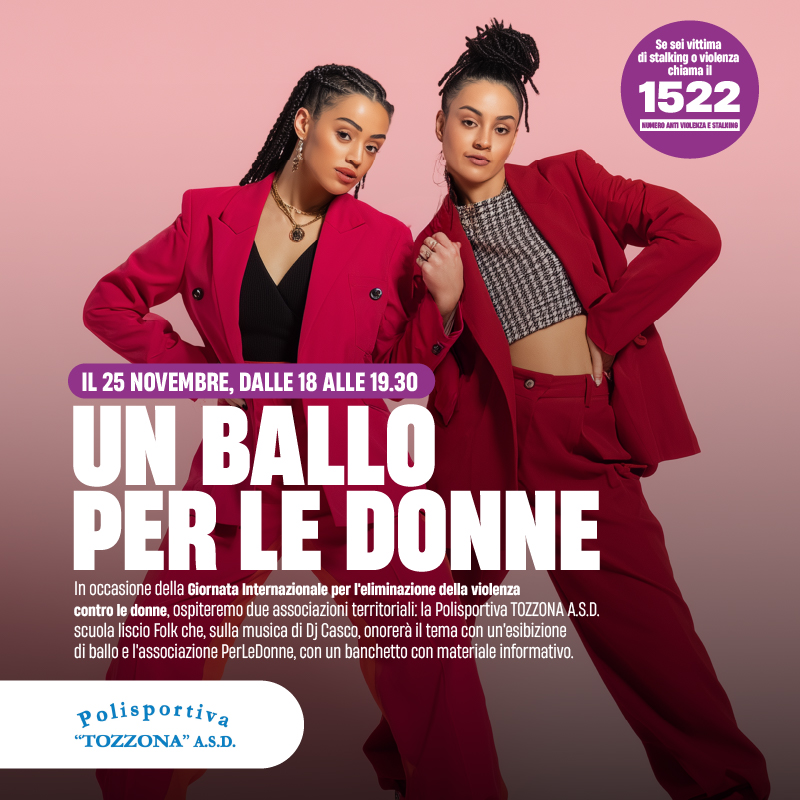 Il 25 novembre il Centro Leonardo celebra la Giornata Internazionale per l’eliminazione della violenza contro le donne con “Un ballo per le donne con i Leo Friends!”.Dalle 18 alle 19.30, la Polisportiva Tozzona A.S.D. proporrà una speciale esibizione di ballo sulla musica di DJ Casco, mentre l’associazione PerLeDonne sarà presente con uno stand informativo. Un […]