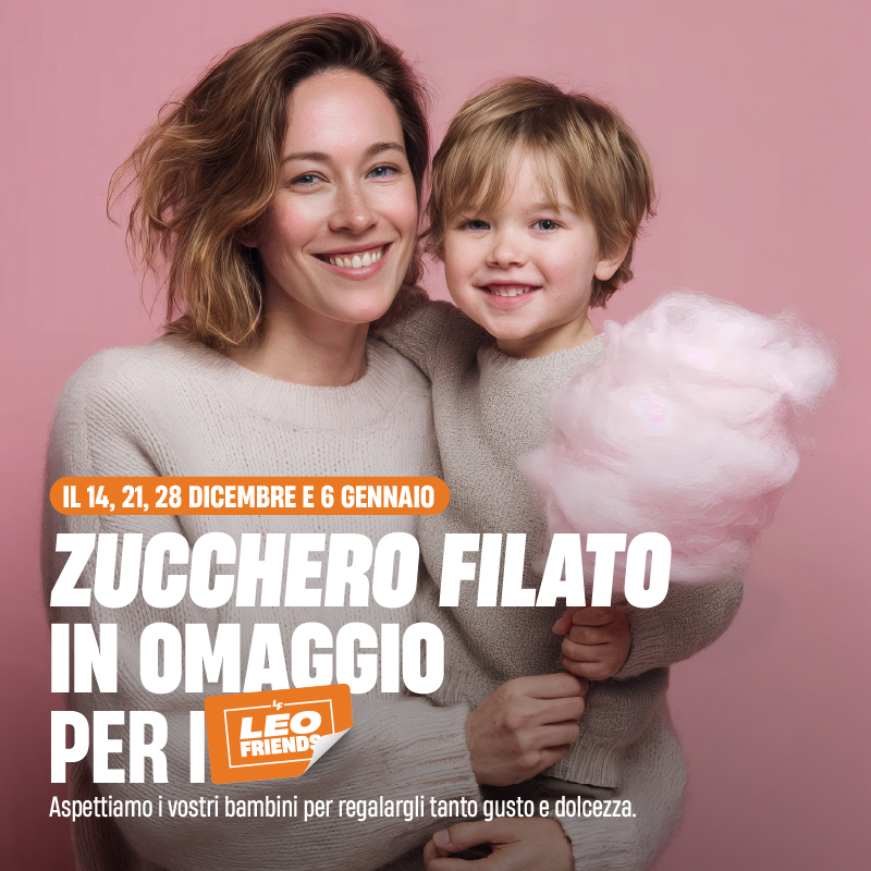 Nei giorni 14, 21, 28 dicembre e 6 gennaio, tutti i piccoli Leo Friends potranno ricevere un soffice zucchero filato in omaggio.