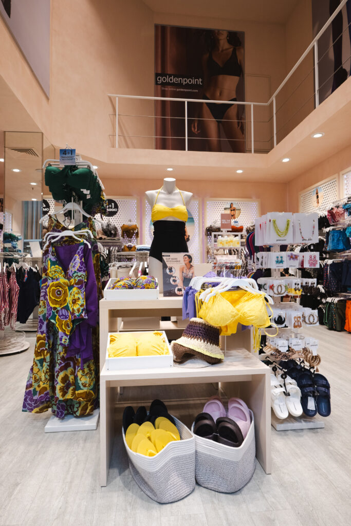 I negozi Goldenpoint sono caratterizzati da un ampio e profondo assortimento di calze, collant, leggings, intimo, beachwear e nightwear rivolgendosi a un pubblico femminile, maschile e junior.